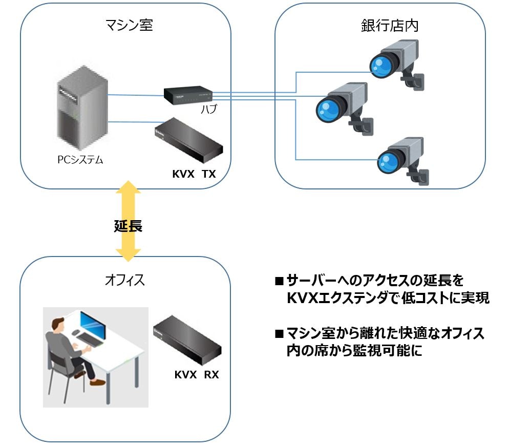 ・監視カメラへのアクセスを、KVXエクステンダの導入により低コストに延長できました。
