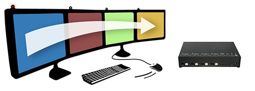 マウスポインターをモニター間で移動するだけで、対象コンピ