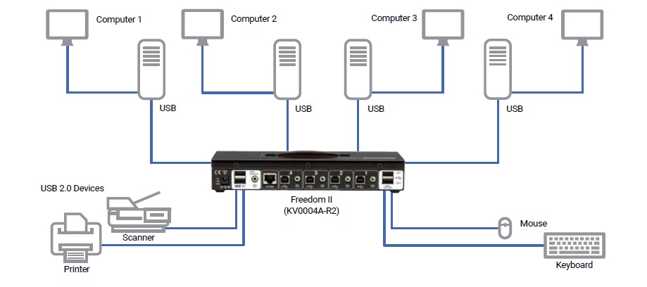 Freedom KMスイッチ|マルチモニタ対応・複数PCを1組のマウスで操作