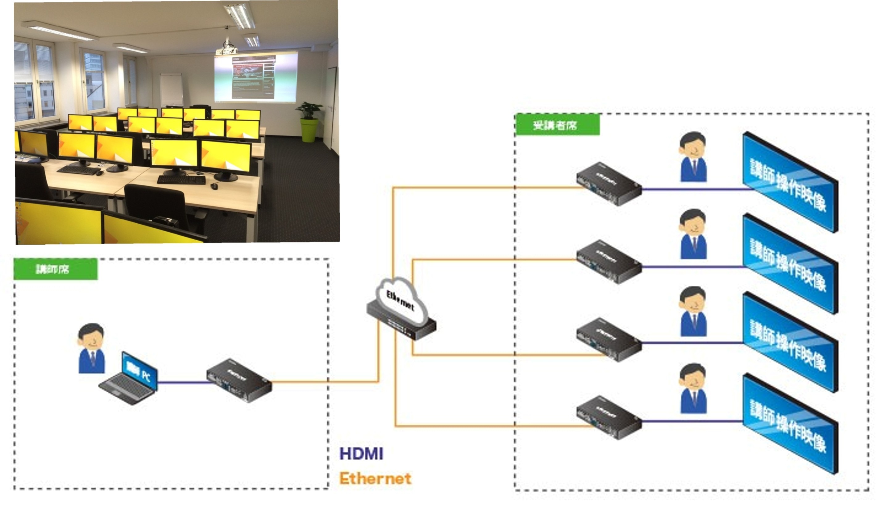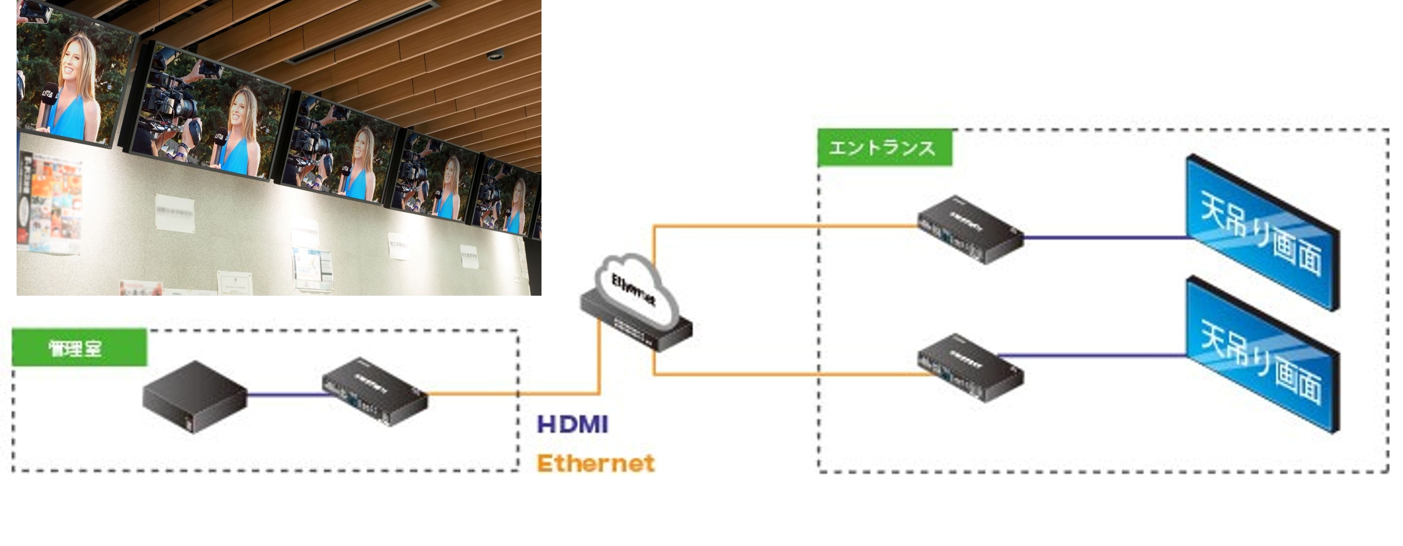 トランスミッタとレシーバをネットワークに接続するだけでシステム構築が可能。既存のネットワーク環境を活用できます