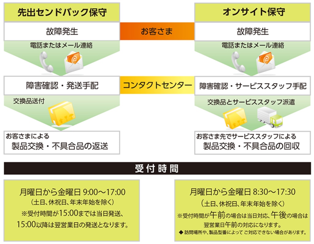 お電話 1 本で、代替品の交換、サービススタッフによる設置サポートまで迅速に対応します。