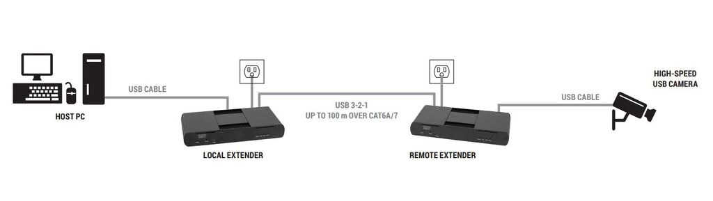 USB エクステンダは、ユーザから離れた場所に置かれた USB 機器にアクセスするための低コストな ソリューションです。CATx、光ファイバ、LAN 接続などのメディアを利用して、USB 1.1、USB 2.0、USB 3.0 / 3.1 の信号を最長で 10km 先まで伝送します